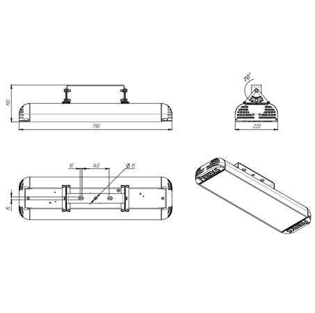 | Габаритные размеры светильника, мм | 790х250х255 |