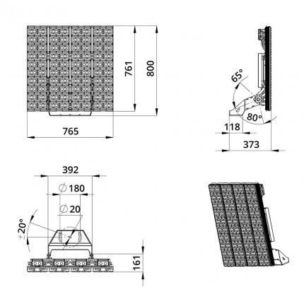 В комплекте идёт кронштейн, который позволяет регулировать угол наклона светильников. Специальные зубцы на кронштейнах дополнительно облегчают регулировку положения прожектора.