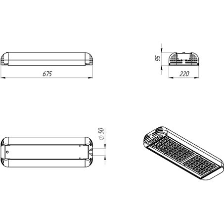 | Габаритные размеры светильника, мм | 675х220х100 |